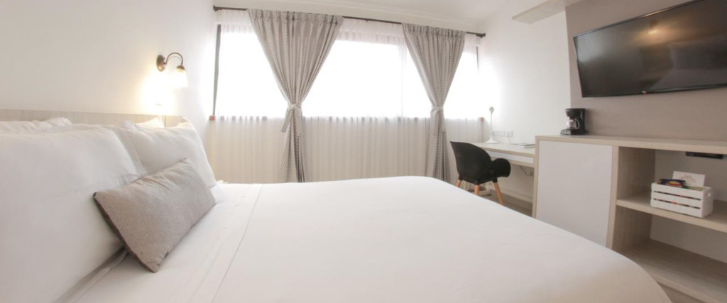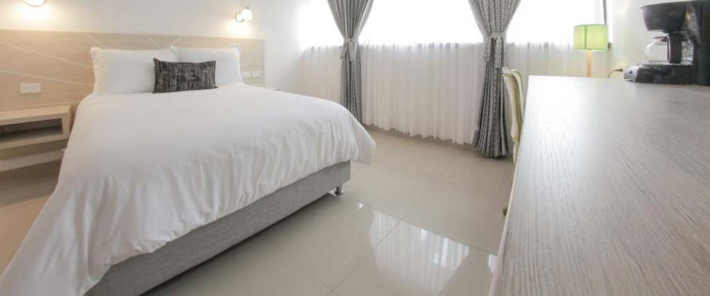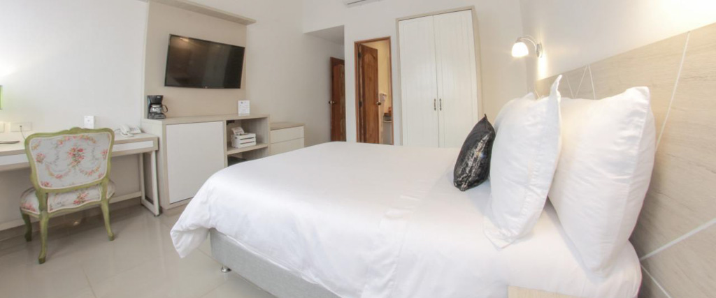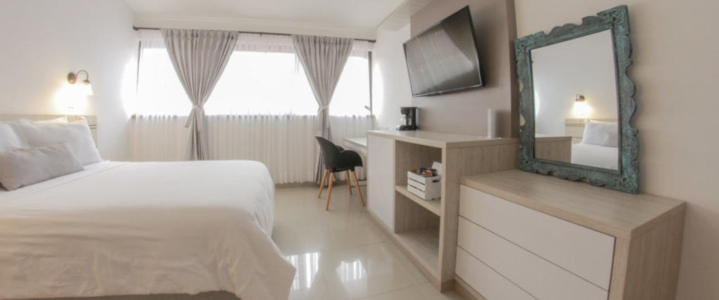 Todas las habitaciones cuentan con baño privado, televisor, closet con caja fuerte, escritorio, mini nevera y cafetera, e Incluyen desayuno tipo americano para los huéspedes.